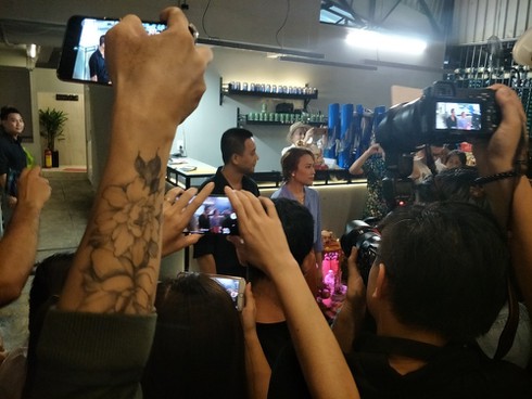 | Nữ ca sĩ tới trễ gần 2 tiếng rưỡi so với thư mời hẹn. Tại sự kiện, rất nhiều phóng viên vẫn kiên trì đợi và vây kín lối thang máy để đón Mỹ Tâm. |