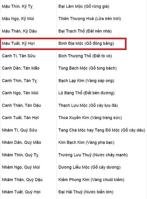 Cũng giống như tuổi Mậu Tuất 2018, người sinh năm 2019 Kỷ Hợi có bản mệnh là Bình Địa Mộc, tức Gỗ đồng bằng.