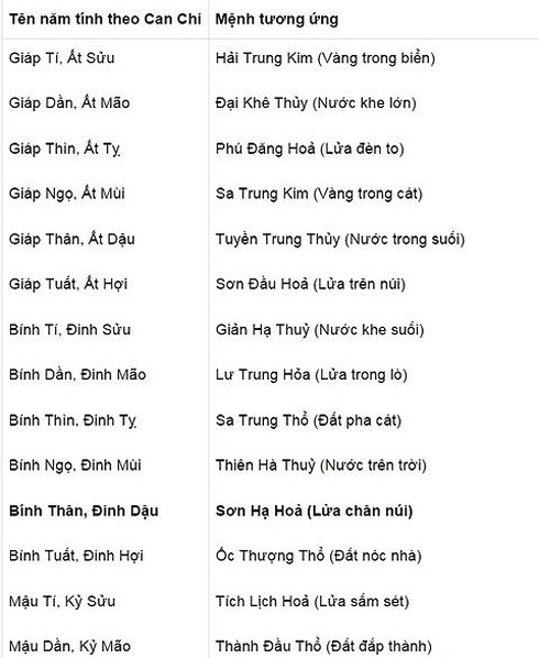 Bạn có thể tra bản mệnh người sinh năm Kỷ Hợi theo bảng Can Chi Mệnh dưới đây: