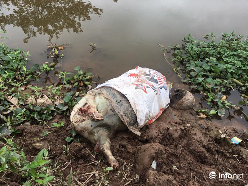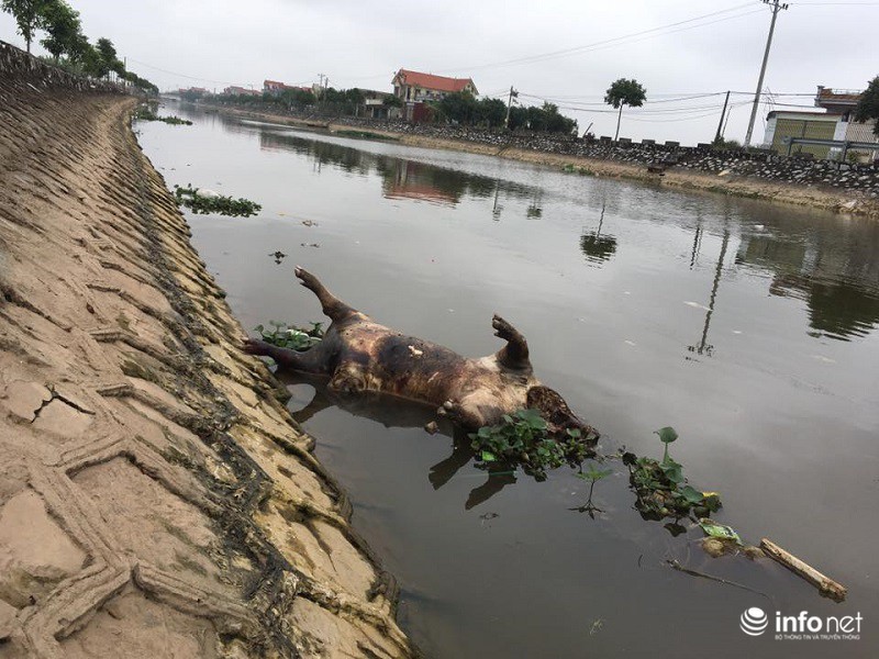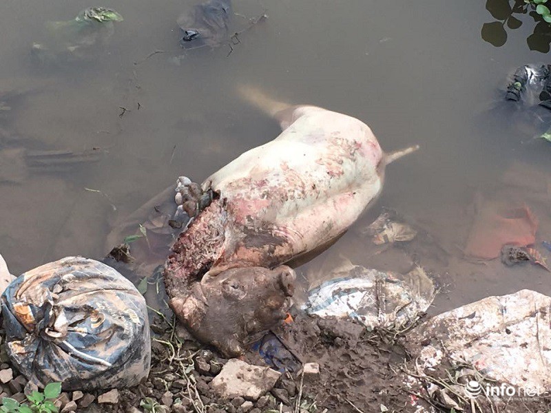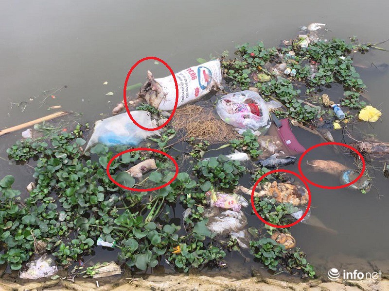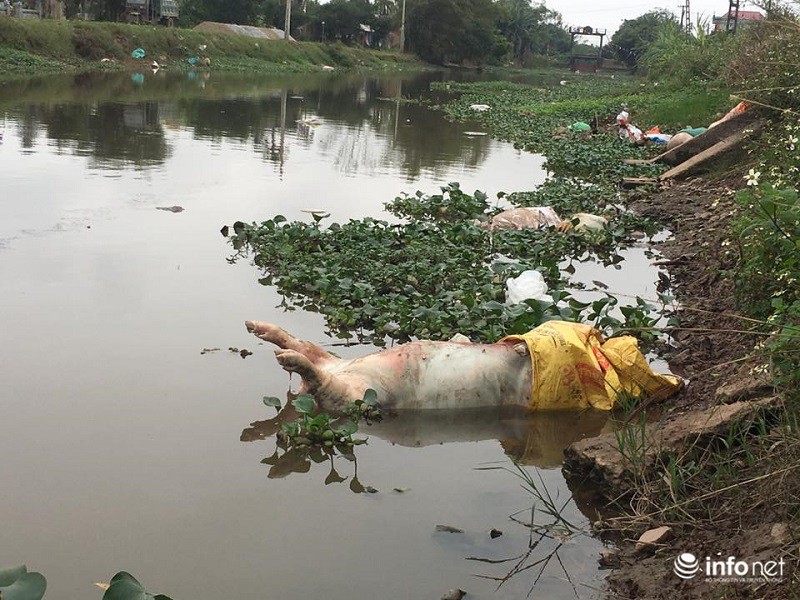 Mặc dù ông Chủ tịch xã khẳng định “lợn từ nơi khác trôi về” nhưng thực tế đoạn sông này nước cạn và gần như không chảy. Thậm chí không ít xác lợn được vứt lơ lửng ven bờ.