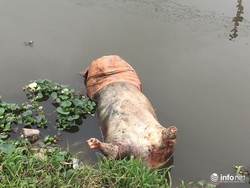 Tại một nhánh của sông Phú Lợi, ngay trước nhà Bí thư Tỉnh ủy Nam Định Đoàn Hồng Phong, xác lợn to, lợn nhỏ, và cả lòng lợn cùng tụ lại. |