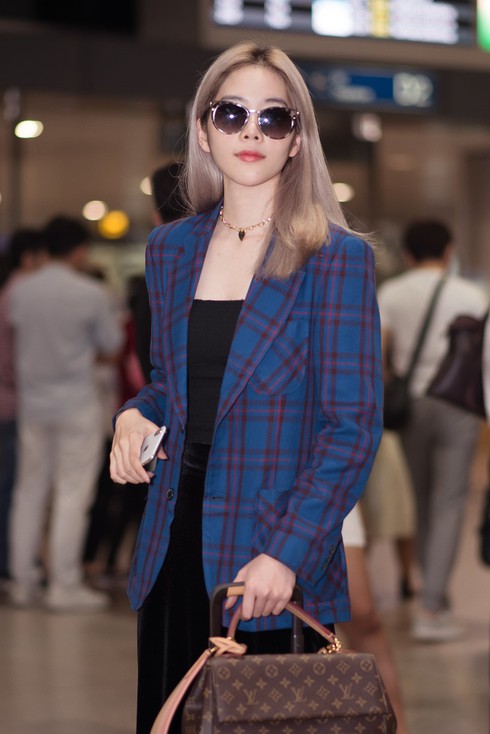 Nam Em diện set đồ 100 triệu đồng, khoe tóc bạch kim da trắng nuột tại sân bay