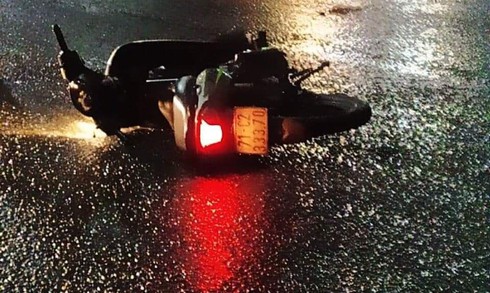 Chiếc xe máy của nạn nhân, nằm cách hiện trường 5m. |