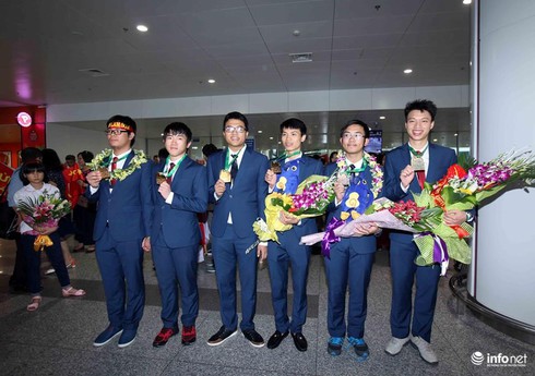 Thí sinh tham dự Olympic Toán quốc tế (IMO) 2017 đã về đến sân bay quốc tế Nội Bài sáng 25/7 |
