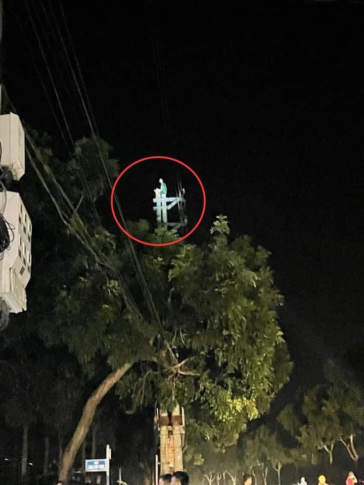 Theo người chia sẻ clip, một thanh niên có biểu hiện không bình thường đã leo lên đỉnh cột điện cao hàng chục mét trong khu phố và ngồi vắt vẻo trên đó. Khi phát hiện ra vụ việc, lực lượng chức năng đã ngắt điện để đảm bảo an toàn cho thanh niên này đồng thời huy động lực lượng tới "giải cứu".