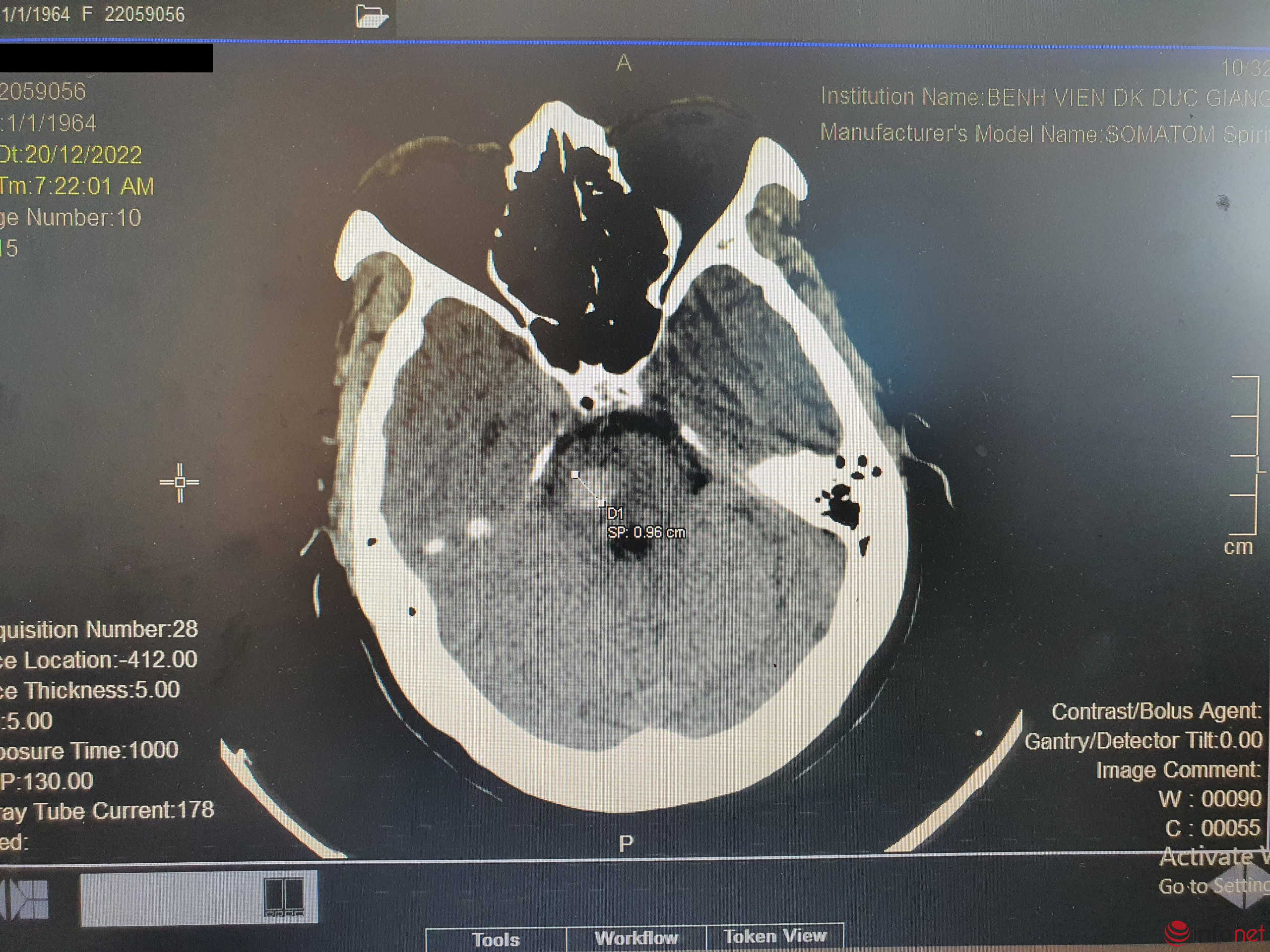 Bệnh nhân ngay lập tức được các bác sĩ đánh giá và chụp phim cắt lớp sọ não, chẩn đoán nhanh chóng được đưa ra là xuất huyết cầu não. Bà T. ngay lập tức được chuyển đến đơn nguyên điều trị đột quỵ để tiến hành các can thiệp cần thiết.