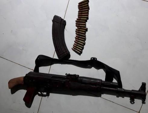 Khẩu sung AK cùng hàng chục viên đạn của Tùng bị thu giữ |