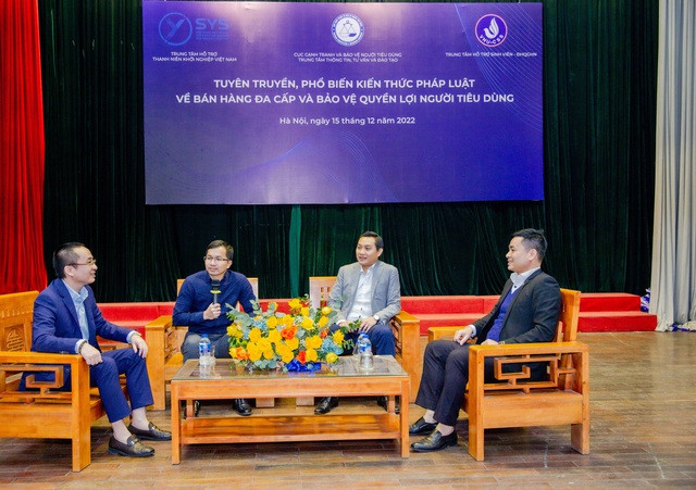 Tối 15/12, tại ký túc xã Mễ Trì - Đại học Quốc gia Hà Nội, Hội thảo tuyên truyền, phổ biến kiến thức pháp luật về bán hàng đa cấp và bảo vệ quyền lợi người tiêu dùng trong các trường đại học được Trung tâm Hỗ trợ thanh niên khởi nghiệp Việt Nam - Trung ương Hội Liên hiệp thanh niên Việt Nam, Cục Cạnh tranh và Bảo vệ người tiêu dùng - Bộ Công Thương phối hợp tổ chức.