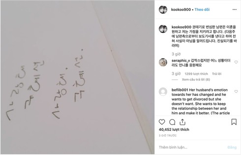 Ngày 18/8, nữ chính 'Vường sao băng' Goo Hye Sun khiến nhiều người bất ngờ khi đăng tải dòng thông báo trên trang cá nhân về việc sẽ ly hôn chồng.
