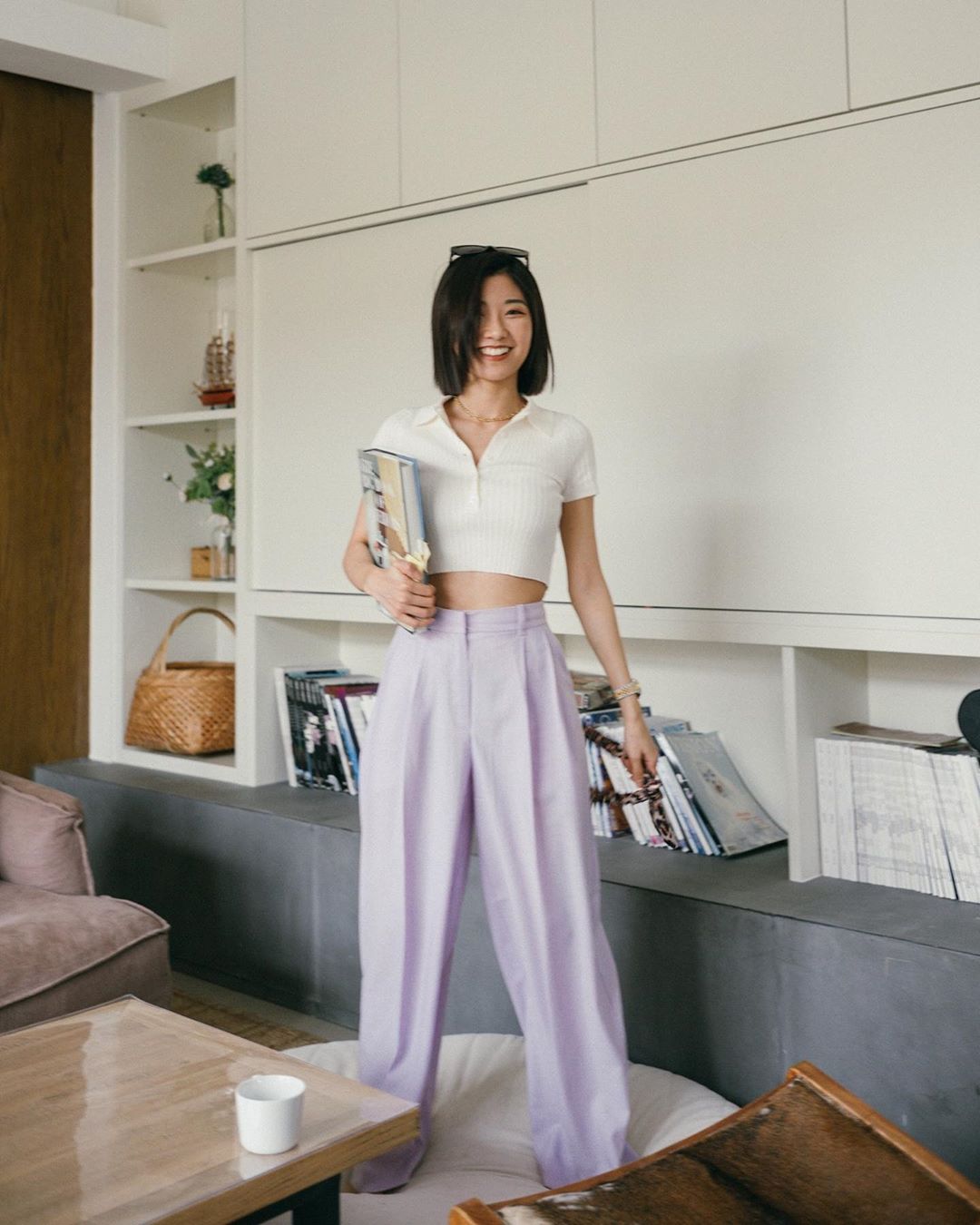 Dạo phố thì không nói nhưng khi đi làm, chị em vẫn phải ưu tiên những items thanh lịch, chuyên nghiệp dù trời nóng đến đâu. Rất may là có kha khá món đồ công sở giúp giải nhiệt cực tốt và quần âu sáng màu là một trong số đó. Kiểu quần âu mùa Hè thường làm từ chất liệu vải tương đối mỏng mát và khi mang những gam màu tươi sáng nhã nhặn, bạn sẽ không phải lo chuyện bị hấp thụ nhiệt khi đi dưới trời nắng nóng.