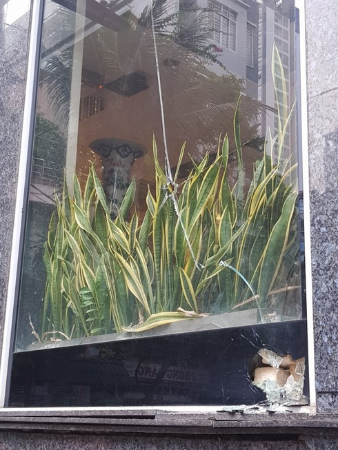 Cửa kính cường lực nhà chị N. bị các đối tượng lạ mặt ném bể
