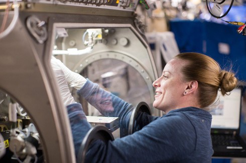 Một nữ khoa học gia đang làm việc trong phòng thí nghiệm của trạm không gian ISS - (ảnh: NASA). |