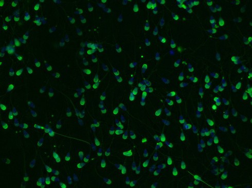 Tinh trùng bò được nhuộm huỳnh quang để theo dõi - (ảnh: NASA). |