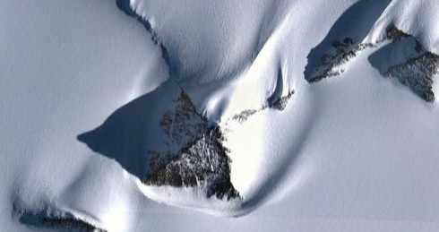 Một hình ảnh độ phân giải cao được Google Map chụp lại ngẫu nhiên cho thấy một cấu trúc bí mật trồi lên bên dưới lớp băng tuyết ở Bắc Cực.