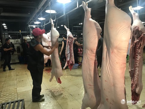 Ông Huỳnh Tấn Phát, Phó Chi cục trưởng Chi cục Thú y TP.HCM cho biết, bình quân mỗi ngày cơ sở giết mổ Xuyên Á (Củ Chi) giết mổ khoảng 1.500 con heo. Tuy nhiên thời gian qua, sức mua thị trường có giảm nhất định, đêm nay cơ sở nhập vào khoảng 900 con heo.