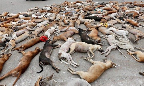 Bức ảnh trên Twitter làm dậy sóng dư luận khi cho rằng hàng chục chú chó đi hoang bị sát hại tại Nga trước thềmWorld Cup 2018. |