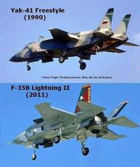 Từ đó, công nghệ cất hạ cánh thẳng đứng trên máy bay F-35B của Mỹ được phát triển dựa trên công nghệ cất hạ cánh thẳng đứng của máy bay chiến đấu Yak-141. Thiết kế nguyên mẫu của Yak-43 và F-35B có nhiều điểm tương đồng, động cơ F135-PW-600 của F-35B sử dụng ống phun đồng trục xoay ba vòng và có thể hướng xuống 90 độ, học từ Yak-141.