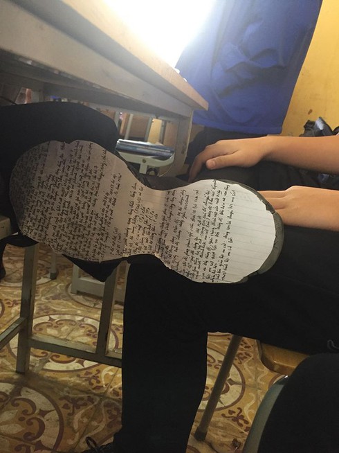 Điều khiến nhiều người thán phục là nam sinh này không mang những tập tài liệu chữ nhỏ tí mà người ta hay ví là "ruột mèo" hay những tờ tài liệu đút vào ngăn bàn như truyền thống mà chiêu thức nam sinh này dùng hết sức "tinh vi đến buồn cười".