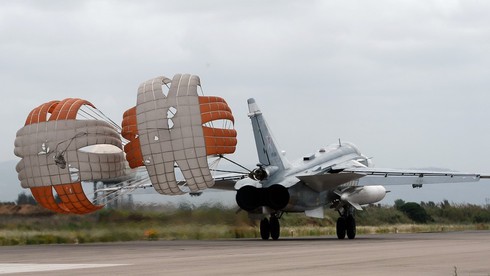 Máy bay ném bom Su-24 của Nga tại căn cứkhông quân Khmeimim ở Syria. |