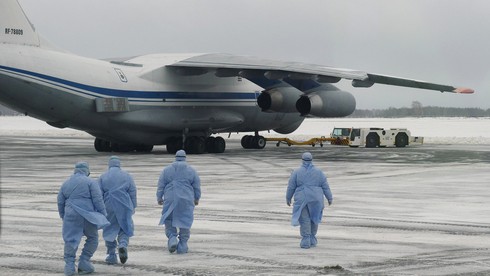 Nhân viên y tế tiếp cận máy bay chở công dân Nga sơ tán khỏi thành phố Vũ Hán, tâm dịch Covid-19. (Ảnh: RT) |