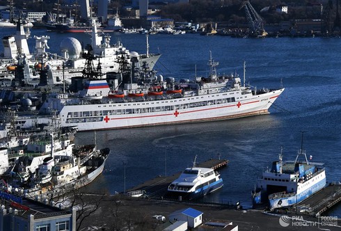 Tàu bệnh viện Irtysh của Hải quân Nga. Ảnh: RIA. |
