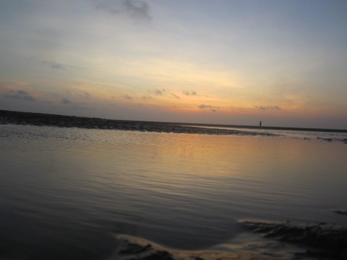 Tuy nhiên, biển đẹp nhất lúc bình minh. Hình ảnh mặt trời dần dần ló rạng trên mặt nước là một trong những bức tranh đẹp nhất mà tự nhiên ban tặng cho Cồn Vành.