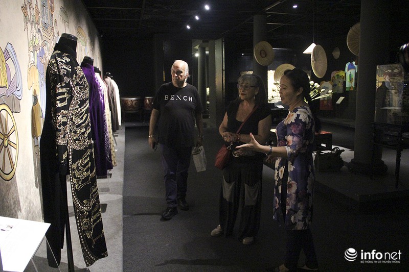 Du khách nước ngoài đến chiêm ngưỡng các bộ sưu tập áo dài Việt Nam |