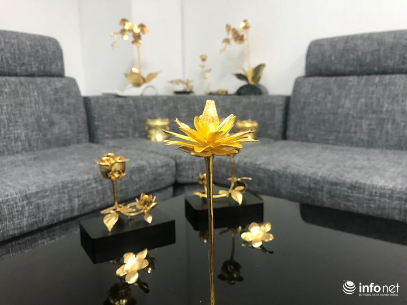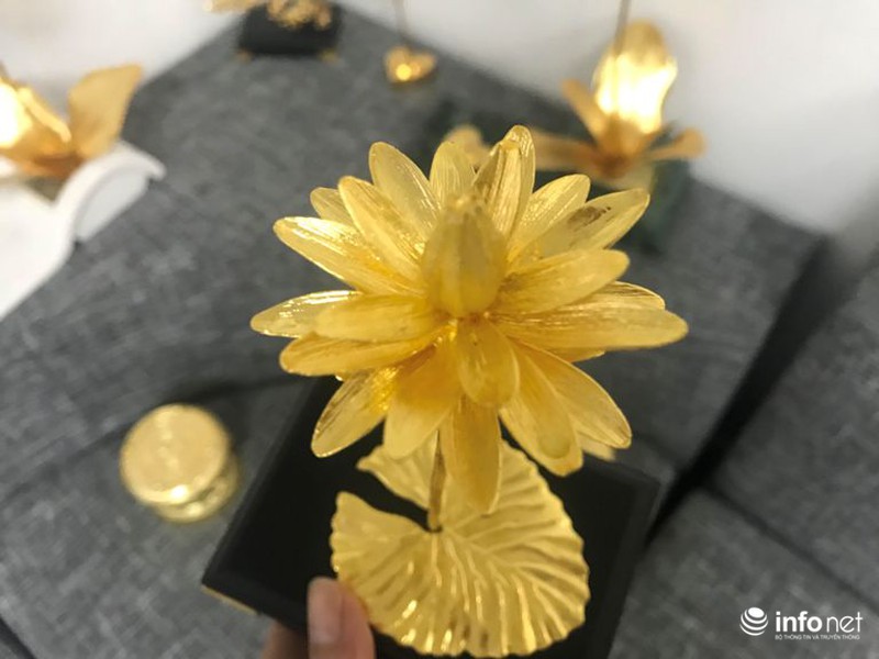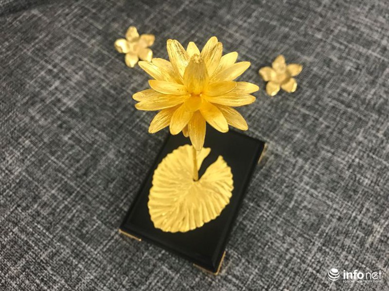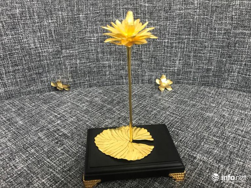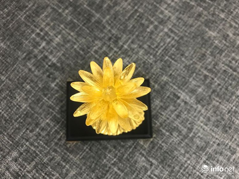 Từ những công đoạn đó, một bông hoa súng đặc biệt, độc đáo đã hoàn thành có giá 200 triệu đồng với chiều cao 15 cm, trọng lượng là 5 lượng vàng.