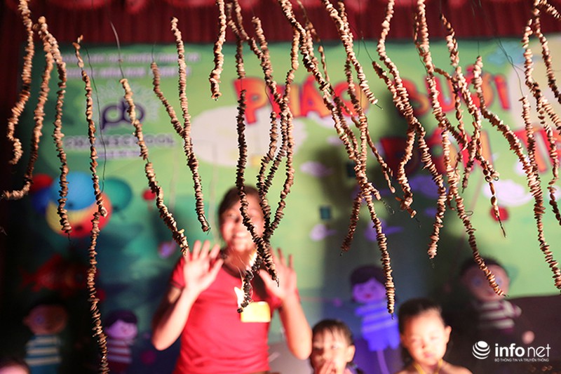 Pháo hạt bưởi - một trò chơi tưởng chừng như đã đi vào quên lãng đã được tái hiện trong Đêm hội Trung thu của Trường mầm non Phạm Tu (Khu đô thị Tứ Hiệp, Thanh Trì, Hà Nội). |