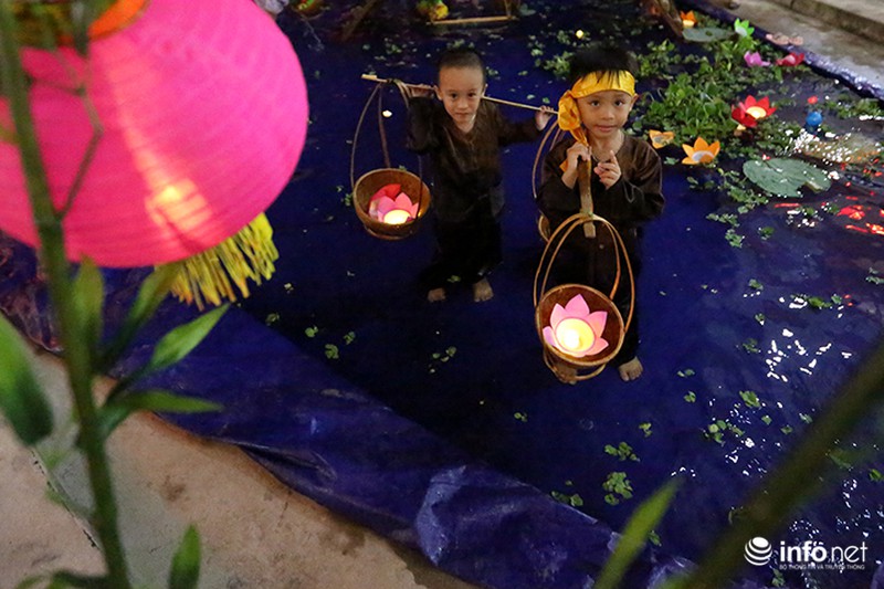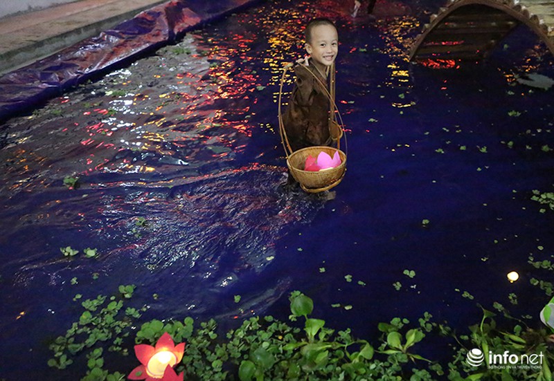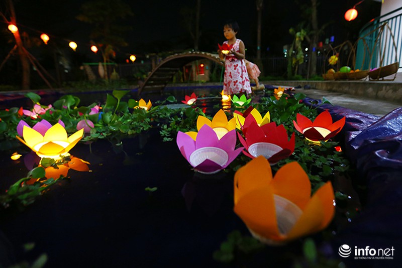 Thay vì đi rước đèn, thả hoa đăng cũng là một cách để các em nhỏ gửi gắm những ước mơ hồn nhiên, ngây thơ qua những bông hoa đăng trôi trên dòng nước trong đêm trăng Rằm. |
