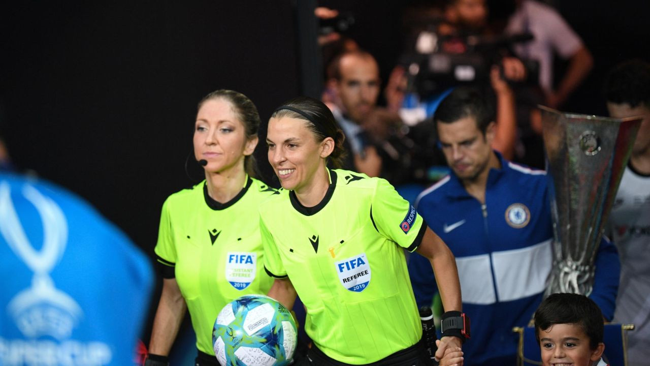 Nữ trọng tài Frappart, 38 tuổi, là người có thành tích nổi bật nhất trong số 3 người. Không chỉ là trọng tài uy tín chuyên bắt các trận bóng đá nữ, cô còn từng tham gia những trận đấu của nam giới. Đặc biệt nhất là bà từng cầm còi trận tranh Siêu cúp châu Âu năm 2019 giữa Liverpool và Chelsea.