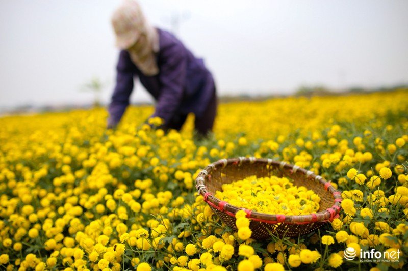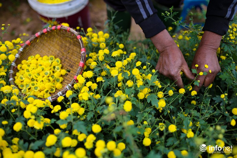 Loài hoa này chỉ bán theo cân chứ không bán theo bông. Theo cô Hương, giá hoa cúc chi năm nay giao động vào khoảng 40.000 đồng/kg hoa tươi. Mỗi ngày, một người có thể thu hoạch được từ 20-30kg hoa tươi. |