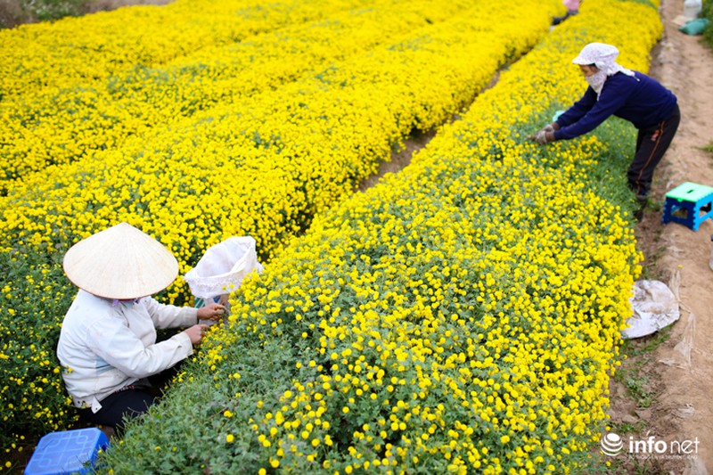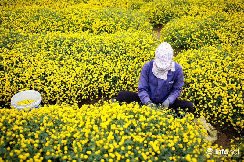 Cô Lê Thị Lý (một chủ vườn hoa tại đây) cho biết, cúc chi mỗi năm chỉ có một vụ thu hoạch. Theo đó, mùa gieo hạt bắt đầu từ khoảng tháng 5, tháng 6, đến tháng 12 là bắt đầu thu hoạch. |