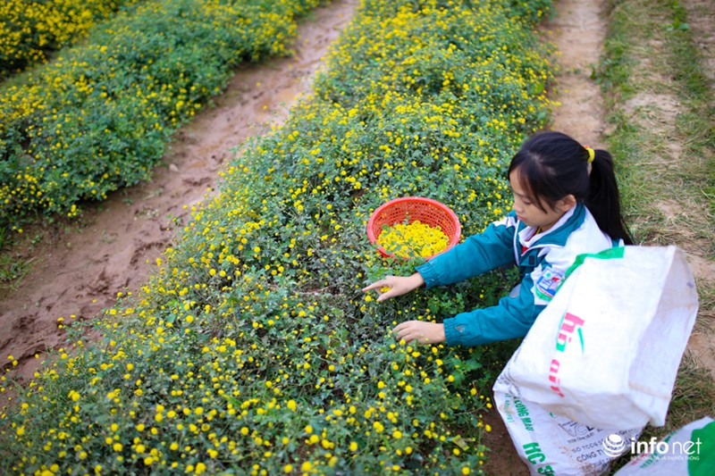 Thời gian này, nhiều em nhỏ cũng tranh thủ ra đồng thu hoạch hoa phụ giúp gia đình. |