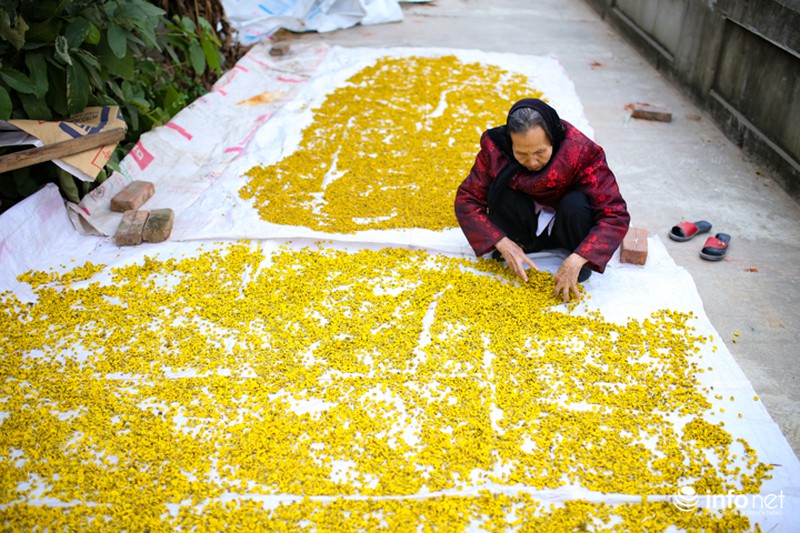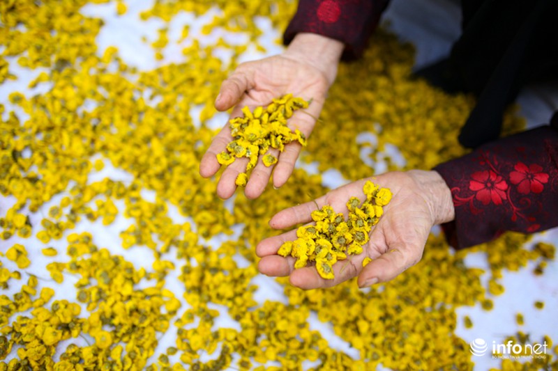 Hoa sau khi thu hoạch sẽ được phơi khô trong nhiều ngày trước khi cho vào lò sấy khô. |