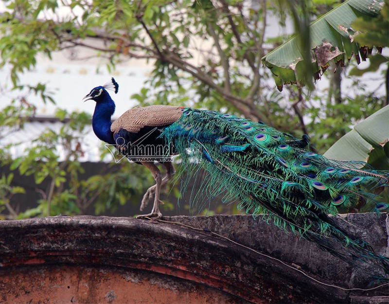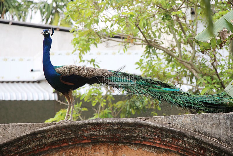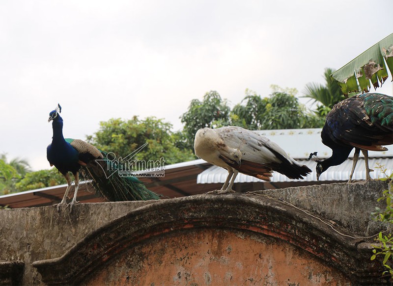 Những con chim công rất dạn dĩ, chúng thường bay đậu lên tường rào xung quanh chùa