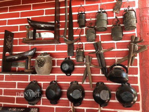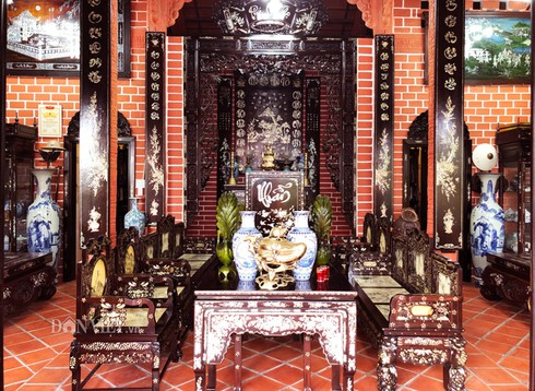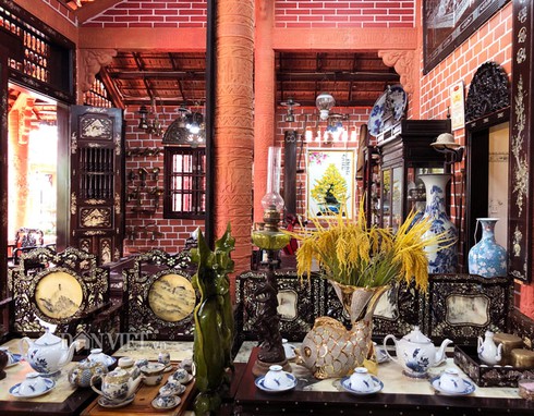 Nhằm tạo điểm nhấn cho ngôi nhà đất sét nung đậm chất Nam bộ, toàn bộ nội thất bằng gỗ bên và gỗ mật được thiết kế với kiểu dáng độc đáo. Chưa dừng lại ở đó, gia chủ còn mạnh tay chi số tiền lớn cho bộ sưu tập đồ cổ quý hiếm, từ bộ dụng cụ sinh hoạt đồng thau cổ, những chiếc bàn ủi xưa của Pháp, lò xô của Đức, bộ cân đòn gắn bó một thời ở những phiên chợ Việt. Đặc biệt là bộ sưu tập hơn 100 chiếc đèn cổ từ đèn dầu, đèn khí đá cho đến đèn măng xong.