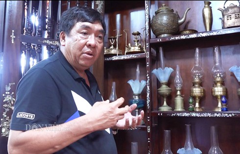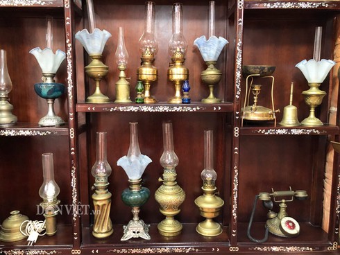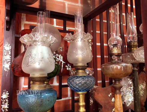 Bộ sưu tập hơn 100 chiếc đèn cổ từ đèn dầu, đèn khí đá cho đến đèn măng xông trong căn nhà độc đáo làm bằng đất sét nung của nghệ nhân gốm sứ Nguyễn Văn Buôl. Ảnh: M.A.
