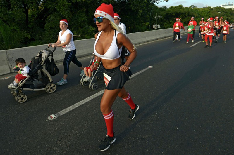 Những người tham dự cuộc thi chạy Santa Claus ở Caracas. |