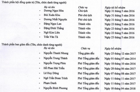 Danh sách HĐQT và Ban TGĐ của VietBank. Nguồn: VietBank. |