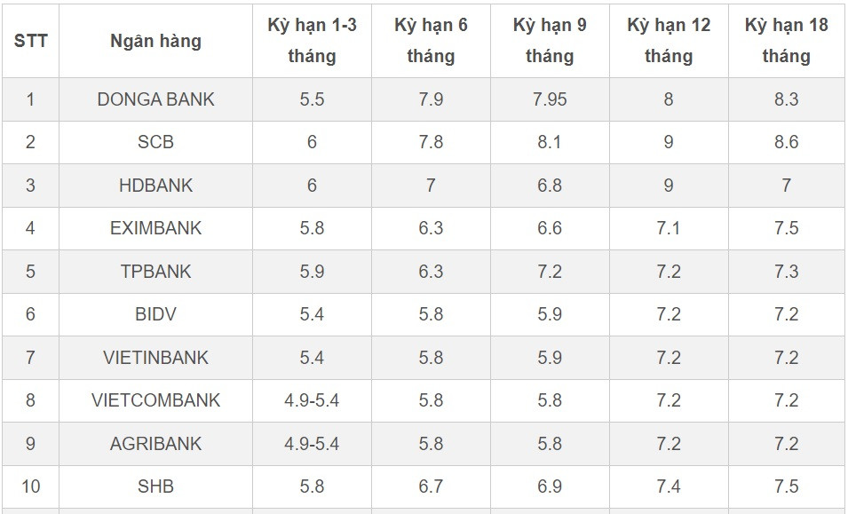 Ngân hàng SCB cũng giảm mạnh lãi suất kỳ hạn 6 tháng từ 9%/năm xuống còn 8,56%/năm, kỳ hạn 9 tháng từ 8,9%/năm xuống 8,43%/năm.