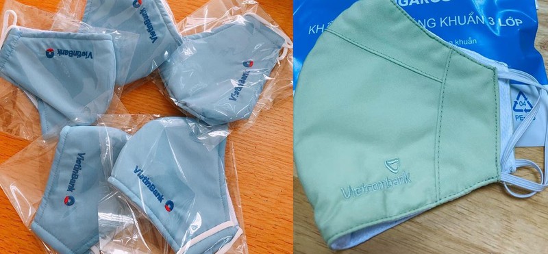 Một số nhà băng như Vietinbank, Vietcombank may khẩu trang gắn kèm luôn logo thương hiệu.Ảnh: FBVN. |