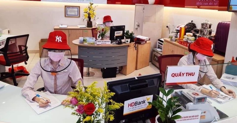 Tại phòng giao dịch của HDBank, nhân viên nhà băng này được trang bị những chiếc mũ màu đỏ cho hợp với màu đỏ đặc trưng của bộ nhận diện thương hiệu.Ảnh: FBVN. |