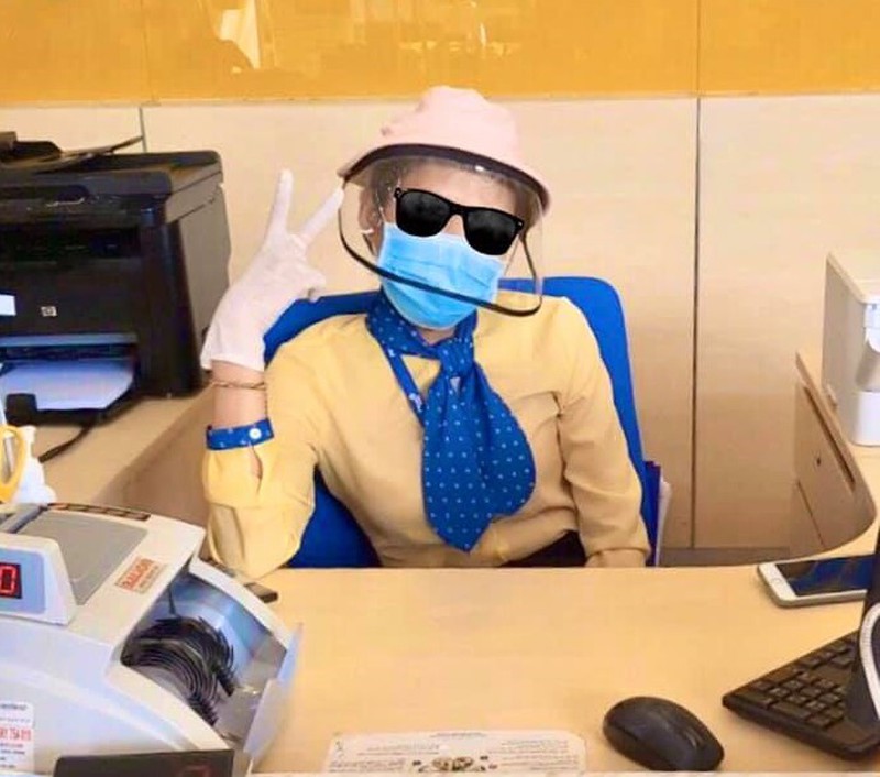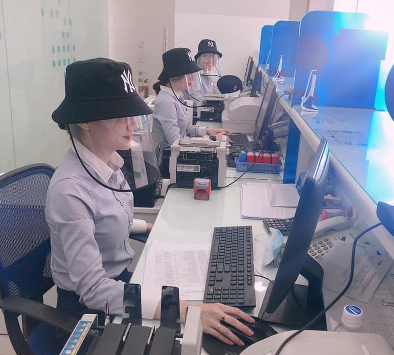 Ngoài găng tay và khẩu trang, việc trang bị thêm lớp kính như thế này sẽ khiến các bankers cảm giác yên tâm hơn.Ảnh: FBVN. |