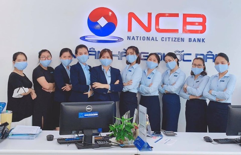 Một số khác còn trang bị khẩu trang đồng phục ton sur ton với màu áo đồng phục, như ngân hàng Quốc Dân (NCB),...Ảnh: FBVN. |