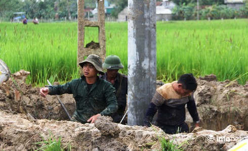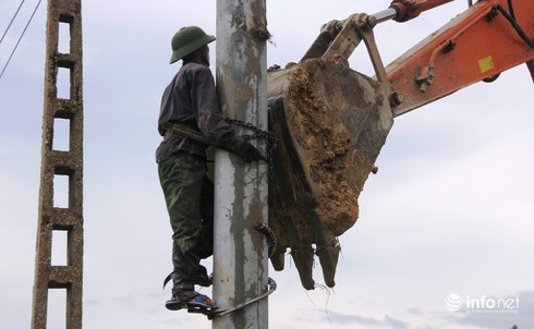 Nhiều cột điện trên địa bàn huyện Yên Thành phải thay thế mới, ngành điện đang khẩn trương khắc phục sự cố để sớm cấp điện lại cho nhân dân. |