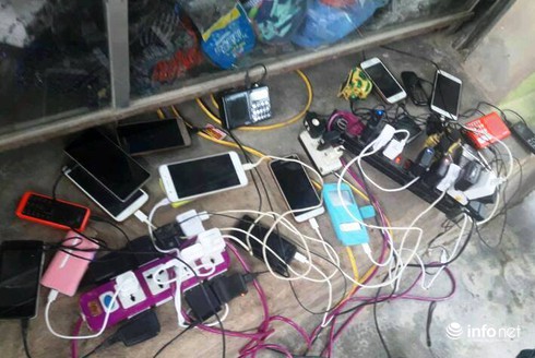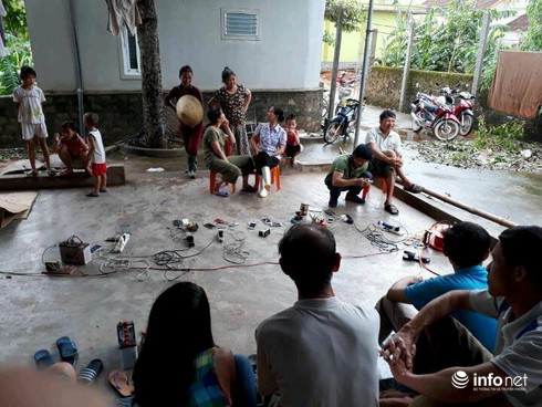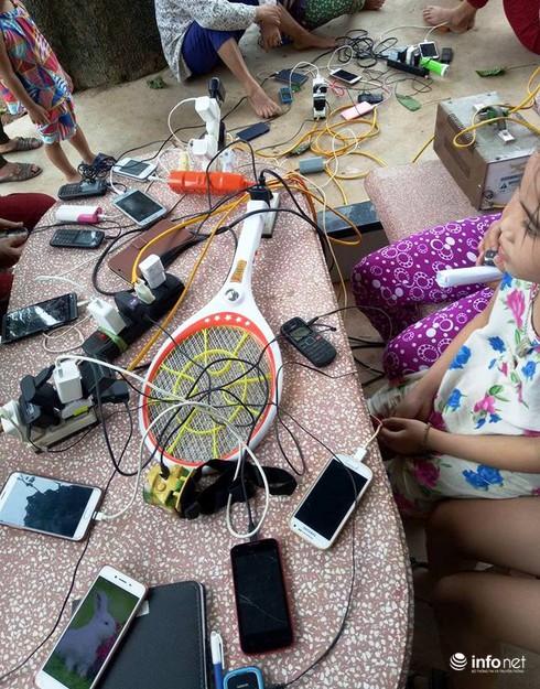 Do mất điện dài ngày, ở các vùng nông thôn, người dân dùng máy phát điện, tập trung nhiều điểm để bà con sạc bin điện thoại và các vật dùng cần thiết trong gia đình. |