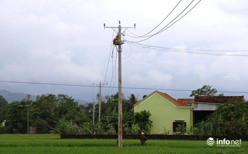 Sau cơn bão số 2, nhiều địa phương như huyện Nghi Lộc, Diễn Châu, Quỳnh Lưu, Yên Thành... (Nghệ An) bị ảnh hưởng nặng nề về hệ thống điện.