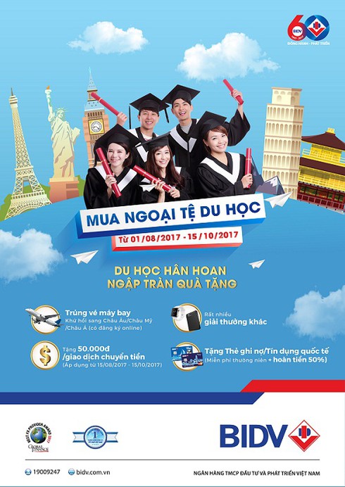 Ngập tràn quà tặng khi mua ngoại tệ du học cùng BIDV