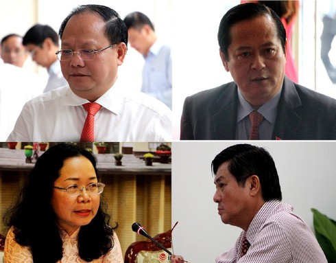 Ông Tất Thành Cang, ông Nguyễn Hữu Tín, bà Thái Thị Bích Liên, ông Đào Anh Kiệt là những cán bộ cao cấp của Thành ủy, UBND TP.HCM bị kỷ luật trong năm 2018. |